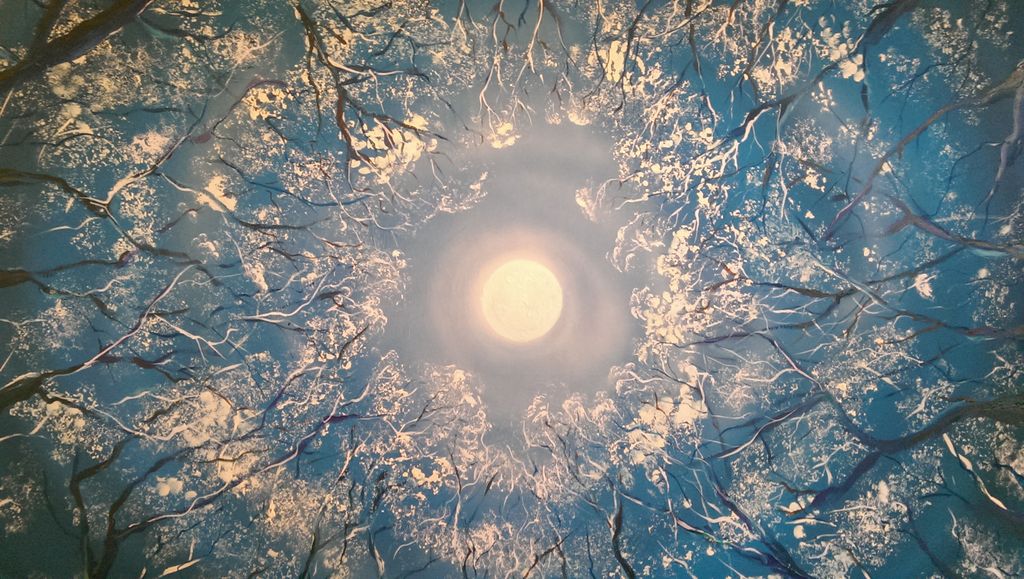 This series of seven paintings exploring the moment cymatic frequency resemble organic forms.
