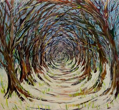 This series of seven paintings exploring the moment cymatic frequency resemble organic forms.